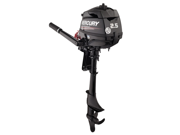 Mercury 2.5 HP 2.5MH delivers affordable, portable power. The 2.5 HP is perfect for small inflatable boats, canoes and other small boats. The Mercury outboard motors are known for their large displacement powerhead which gives this outboard substantially more power than other similar class rated engines. Standard features in Model # Mercury 2.5MH is a 15 inch short shaft, twist grip throttle, forward-neutral gear shift and a built in 1 liter fuel tank with tiller steering.